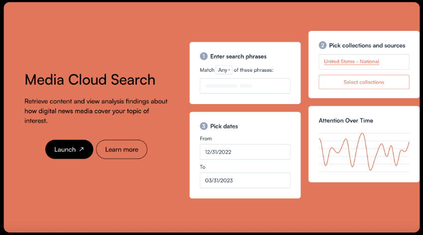 Why?: Media Cloud is an open-source media research project that enables the analysis of the global news flow in many countries. It allows for term-based searches and analysis of the level of mentions obtained in different digital media databases by country.