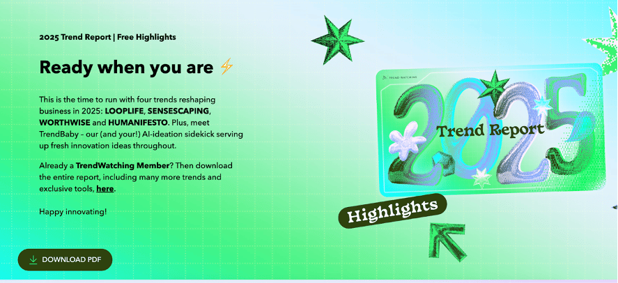 The latest TrendWatching report presents four transformative trends that will define business innovation in 2025.