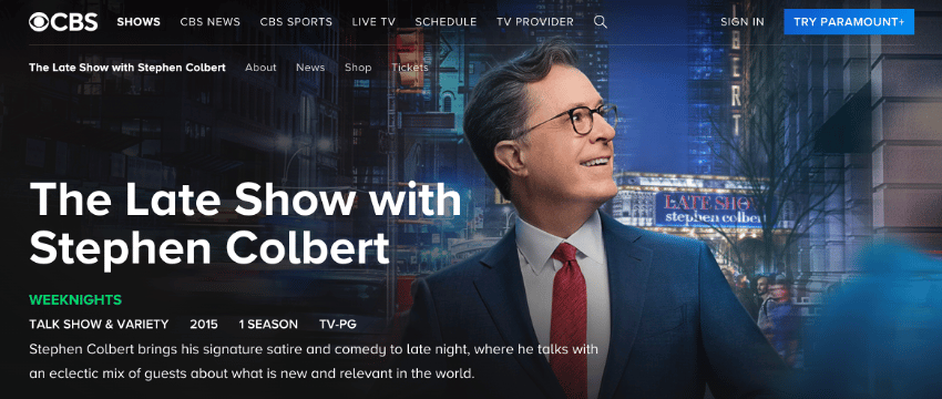 The Late Show, the leading late night show on U.S. television, airs Monday through Thursday nights. The program has had two hosts throughout its history: David Letterman, who was at the helm for 22 seasons, and Stephen Colbert, who when the program ends will have been in charge for 11 seasons.