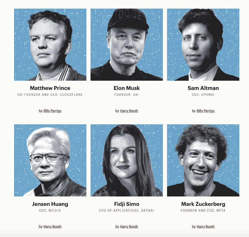 TIME Editor-in-Chief Sam Jacobs writes: “We launched this list in 2023, in the wake of OpenAI’s release of ChatGPT, the moment many became aware of AI’s potential to compete with and exceed the capabilities of humans. Our aim was to show how the direction AI travels will be determined not by machines but by people—innovators, advocates, artists, and everyone with a stake in the future of this technology.”